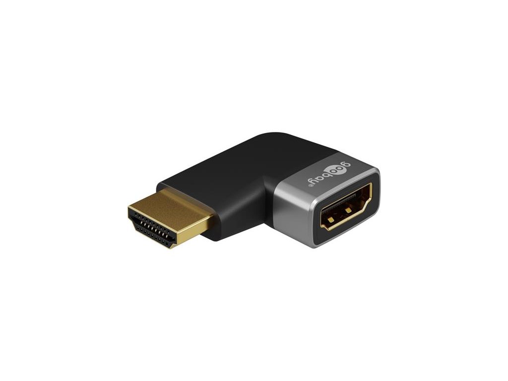 Rad Goobay Plus prichádza v tenkom, elegantnom kovovom prevedení v šedej farbe Sharkskin. Uhlový adaptér s vysoko kvalitnou hliníkovou výstuhou je praktickým riešením pre pripojenie kábla HDMI™ aj v stiesnených priestoroch, napr. na zadnej strane televízora alebo na boku. notebooku. Vďaka uhlu zástrčky vedie kábel tesne pozdĺž zariadenia a účinne zabraňuje zauzlovaniu a zlomeniu kábla.90° zástrčka s vysoko kvalitnou hliníkovou výstuhou umožňuje pripojenie šikmo do strany aj v stiesnených priestoroch, napr. na zadný port zariadenia