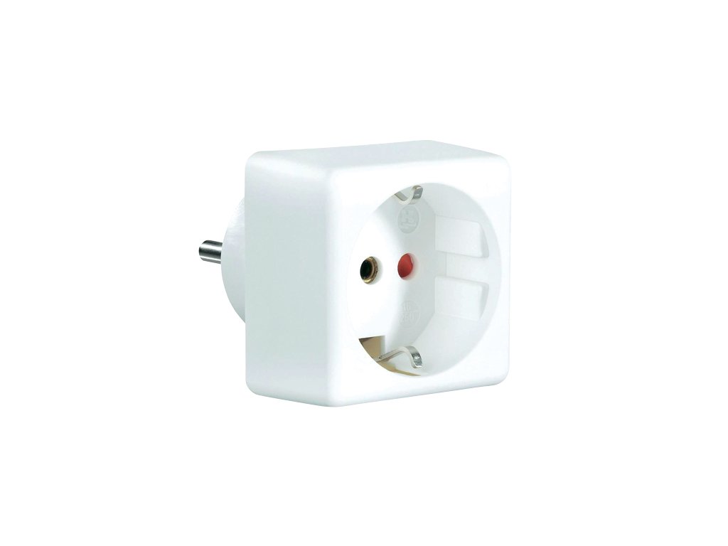 Adaptér pre zasunutie nemeckého výrobku, tj. Jeho zástrčky s bočnými ochrannými kontakty (SCHUKO), do českej zásuvky s nulovým kolíkom. Ochranný kontakt adaptéra (otvor pre nulový koľko) zodpovedá českej zásuvke.Technické parametre: