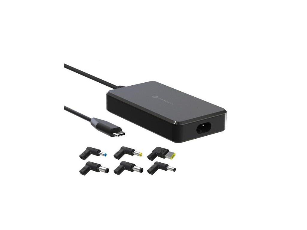 Súprava obsahuje 6 vymeniteľných konektorov (USB-C na jednosmerný prúd), ktoré umožňujú pripojenie adaptéra k zariadeniam značiek ako Lenovo, HP, Dell, Acer, Fujitsu, Toshiba, Compaq a Gateway. Ide o ideálne riešenie pre používateľov s viacerými notebookmi.