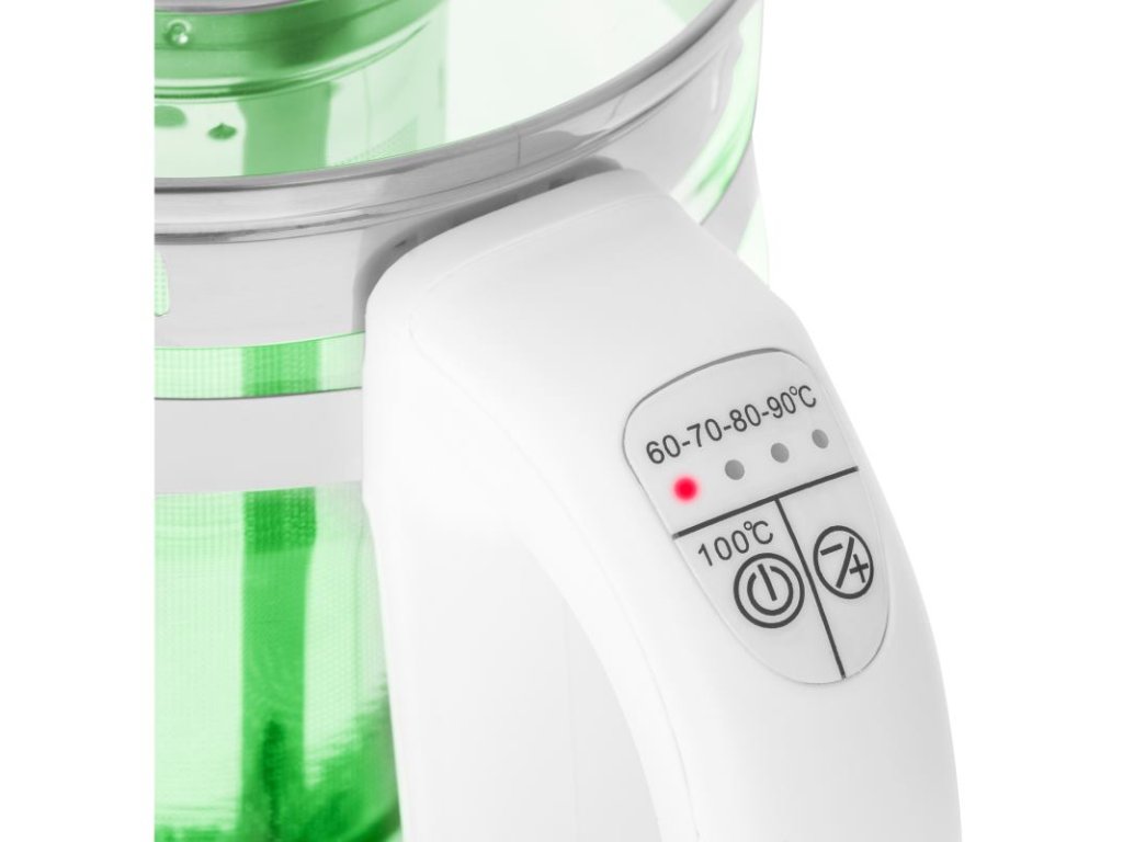 Rôzne farby podsvietenia prevarenej vody v závislosti od zvolenej teploty