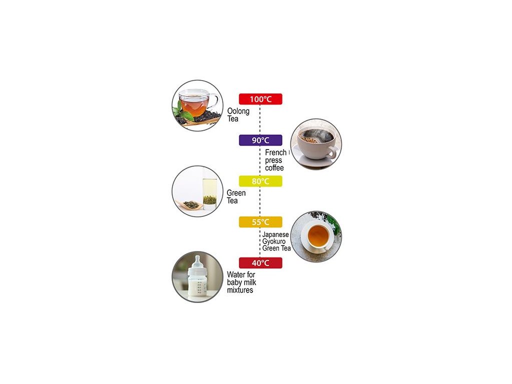 Nastaviteľná teplota varenia 40 °C / 55 °C / 80 °C / 90 °C / 100 °C