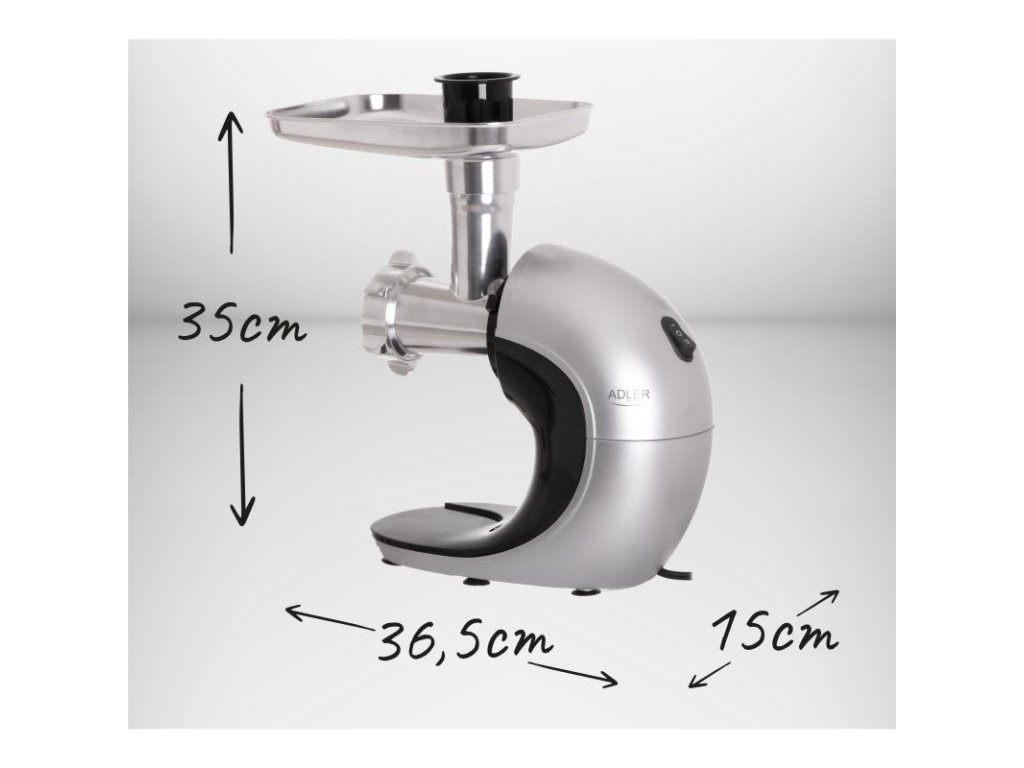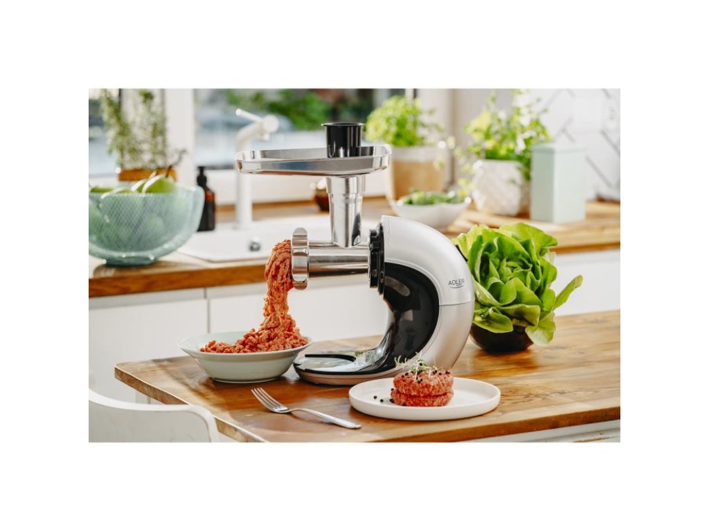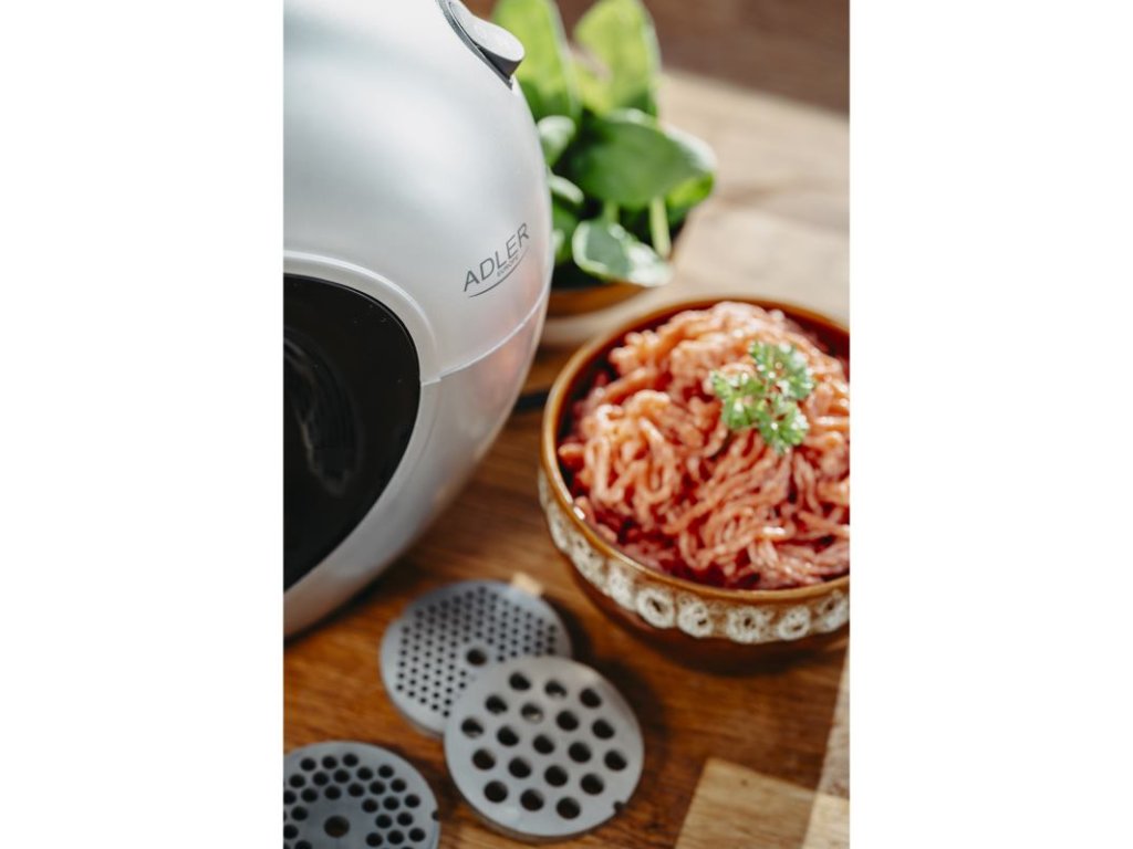 Jednou z hlavných funkcií Adler AD4131 je aj mlynček na mäso, ktorý je vybavený sitkom číslo 8. Toto sitko je dostupné v troch rôznych veľkostiach otvorov: 3 mm, 5 mm a 7 mm. Vďaka tomu máte plnú kontrolu nad textúrou mletého mäsa, čo vám umožňuje pripraviť pokrm presne podľa vašich preferencií. Adler AD4131 disponuje aj funkciou krájača zeleniny, ktorá vám umožní rýchlo a pohodlne krájať, sekať alebo strúhať rôznu zeleninu. Je to perfektný nástroj na prípravu šalátov a iných jedál, ktoré si vyžadujú precíznu prípravu surovín.