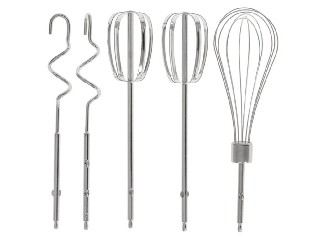3 typy príslušenstva: Obsahuje súpravu 2 plochých metiel, 2 mieseních hákov a 1 šľahača - všetko vyrobené z nerezovej ocele SUS 304 pre maximálnu odolnosť a korózievzdornosť.