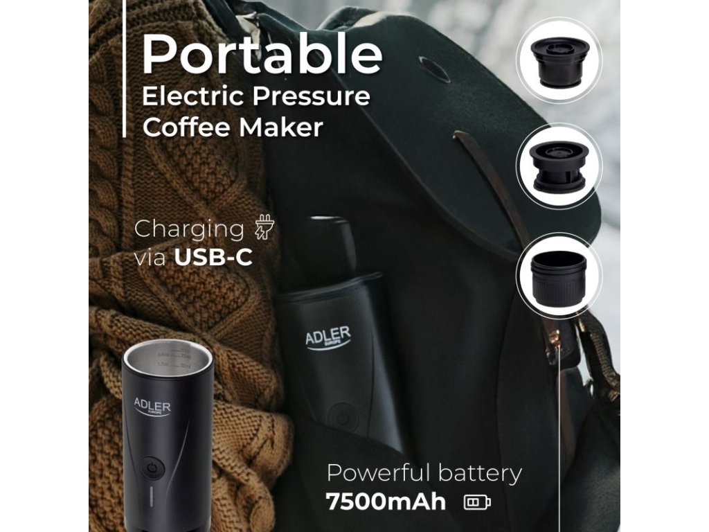 ADLER AD 4400, Prenosný kávovar, 20 Bar, USB-C