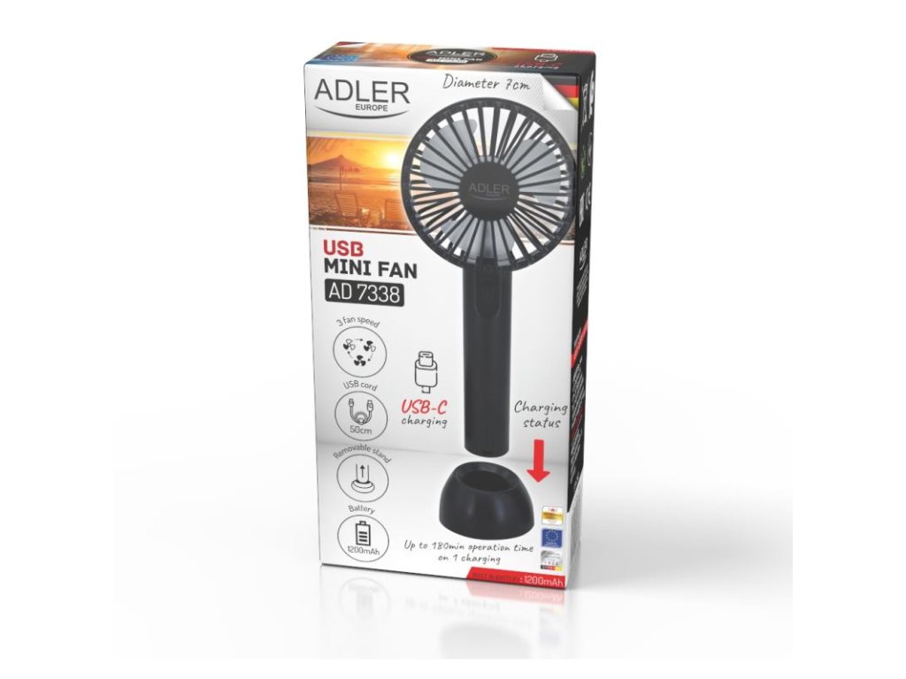 ADLER AD 7338, Mini USB Ventilátor, čierny