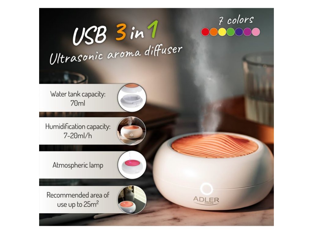 ADLER AD 7969, Ultrasonic Aroma Difuzér 3v1