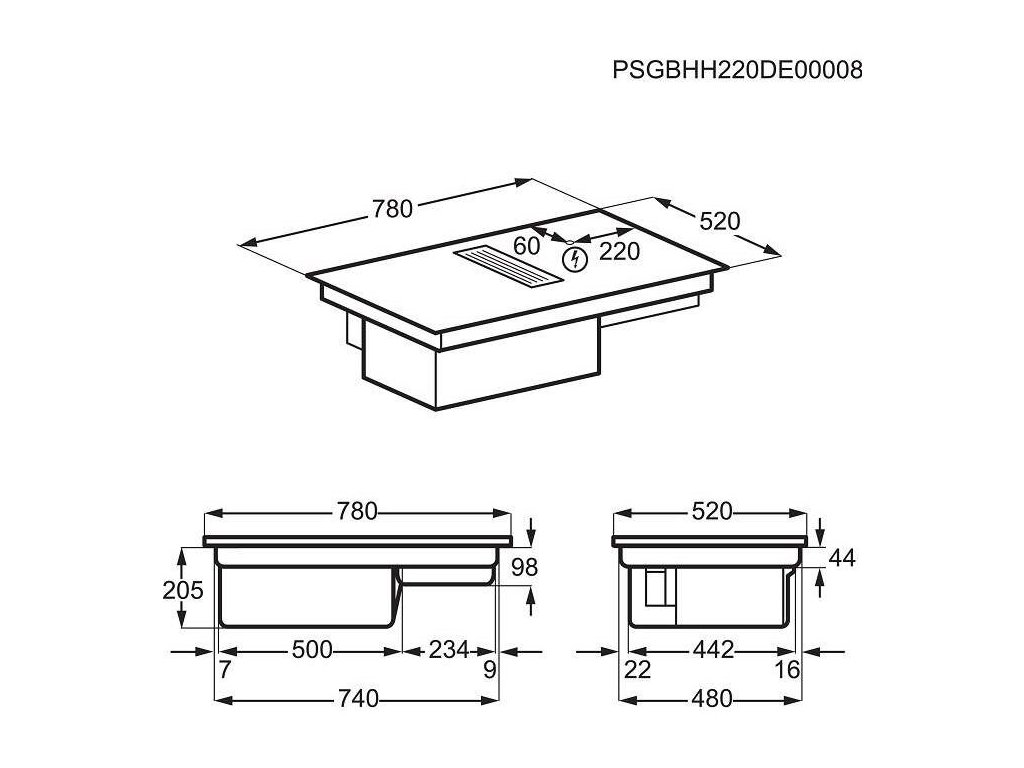 Rozmery pre zabudovanie VxŠxH (mm): 205x750x490