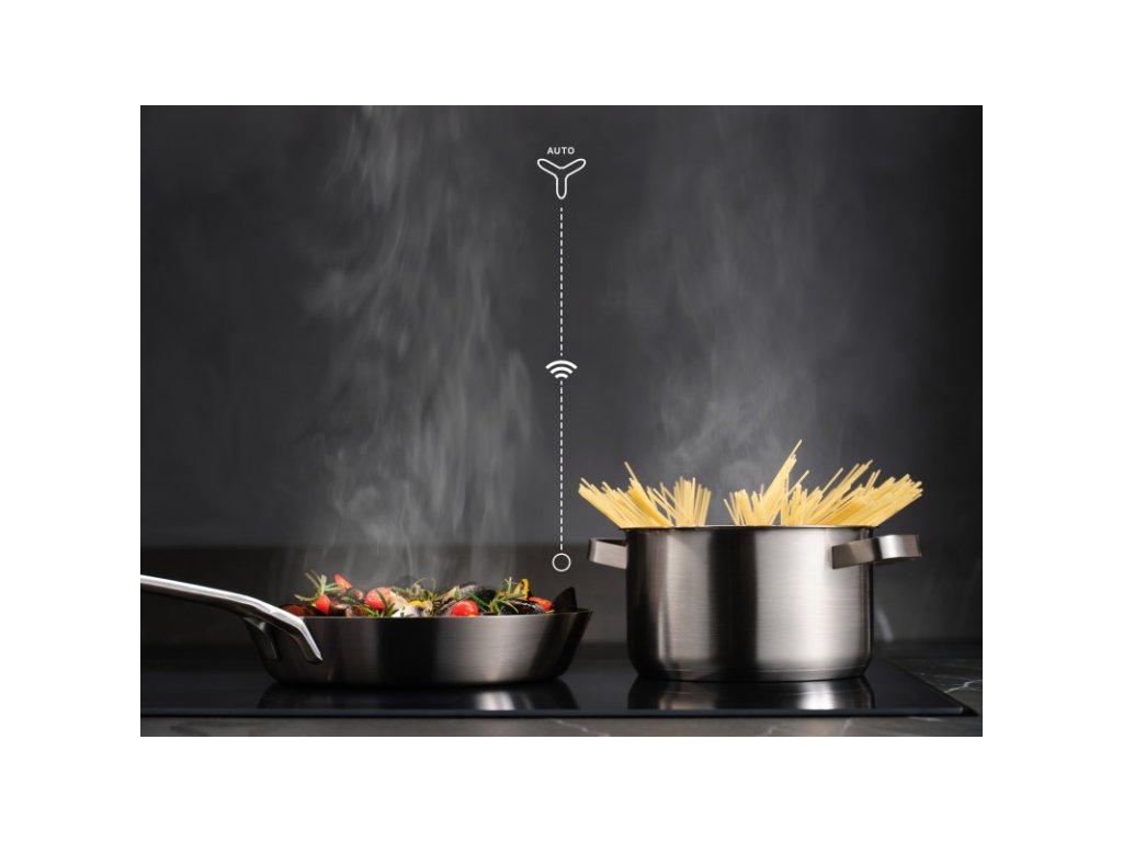Hob2Hood - Automatické ovládanie: Odsávač sa bezdrôtovo prepojí s kompatibilnou varnou doskou. Po jej zapnutí sa automaticky aktivuje osvetlenie a výkon ventilátora sa prispôsobí intenzite varenia. Vy sa tak môžete plne sústrediť na prípravu jedla.