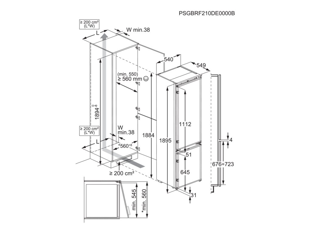 Rozmery pre zabudovanie VxŠxH (mm): 1894 x 560 x 550