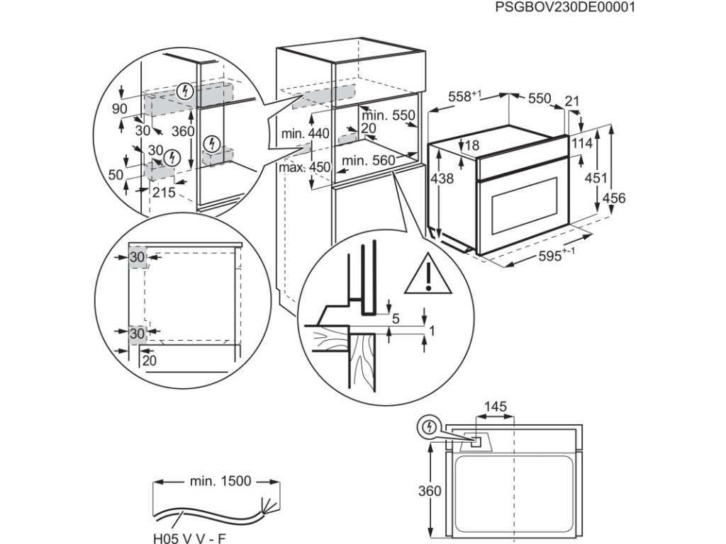 Rozmery pre zabudovanie (V x Š x H): 450 x 560 x 550 mm