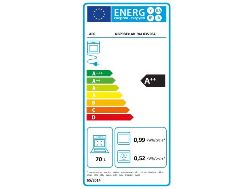 Vysoká energetická účinnosť: Rúra patrí do energetickej triedy A++, čo zaručuje nízku spotrebu elektrickej energie.