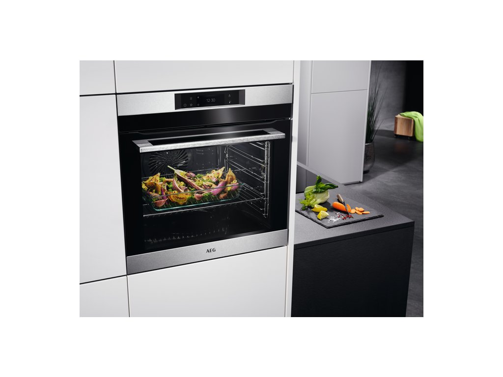 Elektronické funkcie: 160 predpripravených varných programov Assist (senzor hmotnosti/pokrmu), 3 obľúbené programy, 3 pyrolytické cykly, 30 jazykov, akustický signál, automatické vypnutie, nastaviteľná hlasitosť zvukového upozornenia, Check Result (Finish Assist by remaining 10% duration), Child lock (in off mode), minútka pre čistenie, Clock style in standby (2 versions), čas varenia, čas varenia s odhadovaným koncom, demo program s kódovaním, nastavenie jasu displeja, Display Full colour TFT touch 95x35mm, elektronická regulácia teploty, elektronický zámok dvier, rýchle predohriatie s výberom možností, senzor pokrmu, automatické vypnutie senzoru pokrmu, ukazovateľ teploty senzoru pokrmu, senzor pokrmu s odhadom času, udržiavanie teploty 65°C rozšírené o pečenie pri nízkej teplote a nastavenie senzoru pokrmu, tóny tlačidiel a tóny alarmu a chýb - aktivácia / deaktivácia (okrem ZAP/VYP), jazyky / textový displej, Main switch - general, denná pamäť 3 dni späť, minútka, zapnutie/vypnutie osvetlenia rúry (menu + samostatné tlačidlo), pyrolytické čistenie (3 cykly: rýchly, normálny, intenzívny), ukazovateľ skutočnej teploty (°C) , indikácia zvyškového tepla (°C), využitie zvyškového tepla, servisné informácie, vypnutie času dňa v stave vypnutia, odporučaná teplota, denný čas