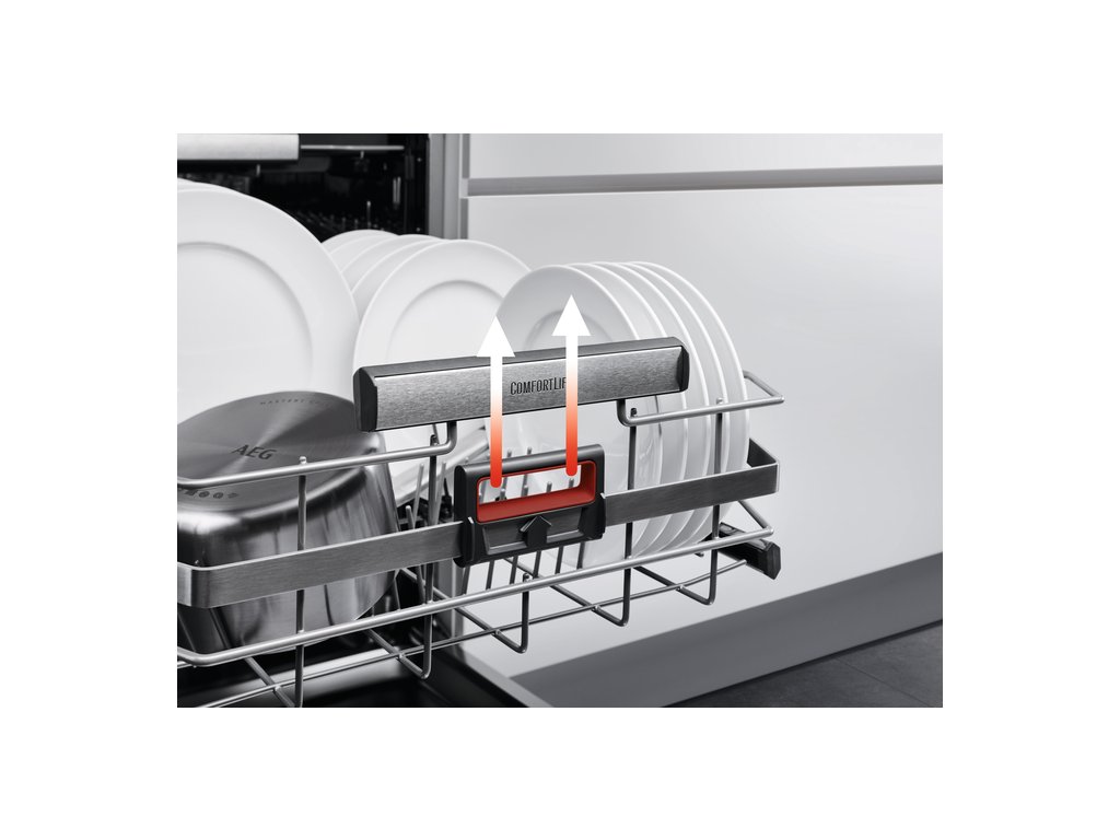 Dolný košík s: 4 foldable plate racks Comfort Lift, Stainless steel handle