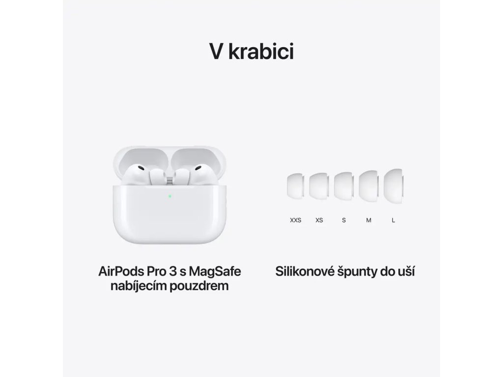 Predstavujeme svetovo najlepšie in‑ear Active Noise Cancellation pre najpôsobivejší posluchový zážitok. AirPods Pro 3 sa automaticky prispôsobuje prostrediu a vašim preferenciám vylepšeným akustickým tesnením a ultra‑nízkopresluchovými mikrofónmi odstraňujúcimi ešte viac než neželaných zvukov. Počujete iba to, čo chcete - pri dosiahnutí nevídanej úrovne zvuku.