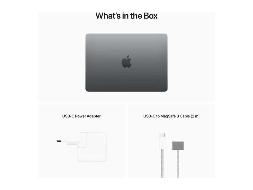 Balenie: 35 W duálny USB-C napájací adaptér, USB-C na MagSafe 3 nabíjací kábel 2 m, MacBook Air