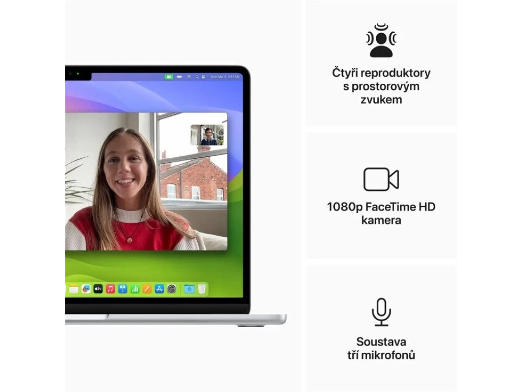 Predinštalované Aplikácie: App Store, Knihy, Kalendár, Kontakty, FaceTime, Nájsť, Freeform, GarageBand, Domácnosť, iMovie, Keynote, Mail, Mapy, Správy, Hudba, Poznámky, Numbers, Pages, Photo Booth, Fotky, Podcasty, Náhľad, QuickTime Player, Pripomienky, Safari, Skratky, Akcie, Time Machine, Apple TV, Diktafón