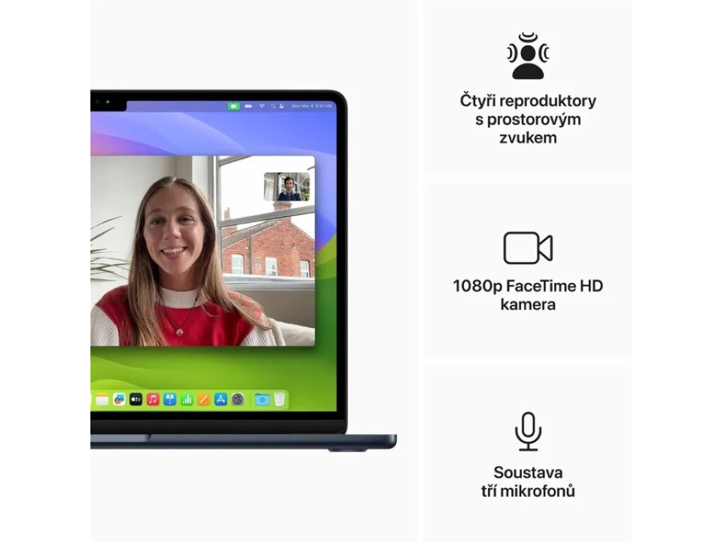 Predinštalované Aplikácie: App Store, Knihy, Kalendár, Kontakty, FaceTime, Nájsť, Freeform, GarageBand, Domácnosť, iMovie, Keynote, Mail, Mapy, Správy, Hudba, Poznámky, Numbers, Pages, Photo Booth, Fotky, Podcasty, Náhľad, QuickTime Player, Pripomienky, Safari, Skratky, Akcie, Time Machine, Apple TV, Diktafón
