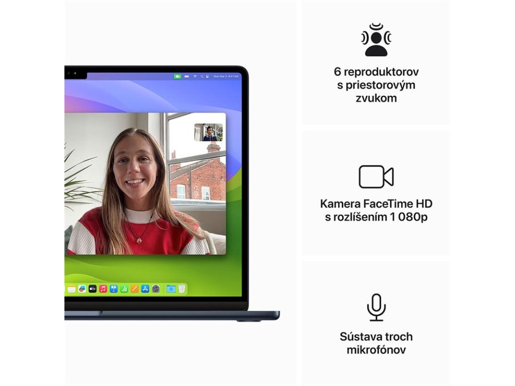 Predinštalované Aplikácie: App Store, Knihy, Kalendár, Kontakty, FaceTime, Nájsť, Freeform, GarageBand, Domácnosť, iMovie, Keynote, Mail, Mapy, Správy, Hudba, Poznámky, Numbers, Pages, Photo Booth, Fotky, Podcasty, Náhľad, QuickTime Player, Pripomienky, Safari, Skratky, Akcie, Time Machine, Apple TV, Diktafón
