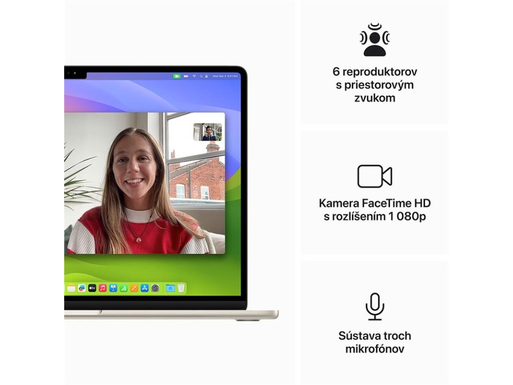 Predinštalované Aplikácie: App Store, Knihy, Kalendár, Kontakty, FaceTime, Nájsť, Freeform, GarageBand, Domácnosť, iMovie, Keynote, Mail, Mapy, Správy, Hudba, Poznámky, Numbers, Pages, Photo Booth, Fotky, Podcasty, Náhľad, QuickTime Player, Pripomienky, Safari, Skratky, Akcie, Time Machine, Apple TV, Diktafón
