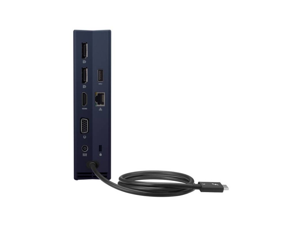 Dokovacia stanica je vybavená širokou škálou portov, vrátane jedného Thunderbolt 3 (USB-C), jedného USB-C 3.2 Gen 2, troch USB-A 3.2 Gen 2, dvoch DisplayPort 1.4, jedného HDMI 2.0 a jedného VGA portu. Pre pripojenie k sieti slúži gigabitový RJ-45 LAN port. Nechýba ani kombinovaný audio jack pre slúchadlá a mikrofón a integrovaná čítačka čipových kariet.