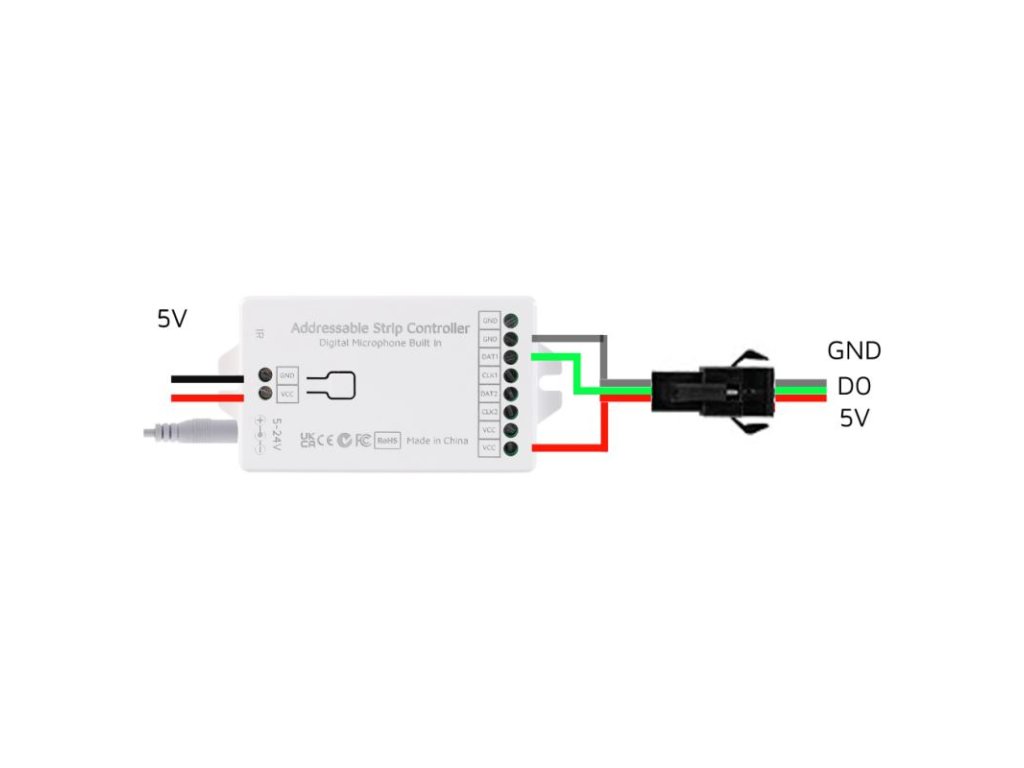 Pripojte LED pás ku kontroléru, pričom sa uistite, že VCC je pripojený k 5V, DAT k D0 a GND k GND.