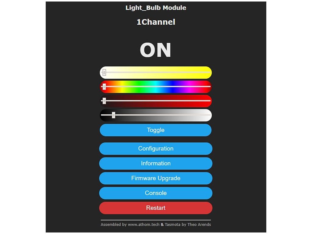 Žiarovka je pred-naprogramovaná s firmvérom v testovacom režime výroby (farba sa mení v rôznych intervaloch, aby sa zabezpečilo, že všetky LED sú v dobrom stave). Po pripojení žiarovky k vašemu WiFi routeru sa výrobný režim prestane zobrazovať, alebo môžete aktualizovať na najnovšiu verziu pomocou OTA.
