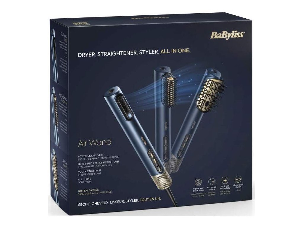 BaByliss AS6550E Air Wand s vysokorýchlostným digitálnym motorom zaručuje dlhú životnosť a efektívne prúdenie vzduchu vďaka špeciálne navrhnutému výstupu vzduchu. Poskytuje optimálnu rýchlosť a tlak vzduchu pre rýchle vysúšanie a styling aj za mokra, pričom chráni vlasy pred tepelným poškodením.
