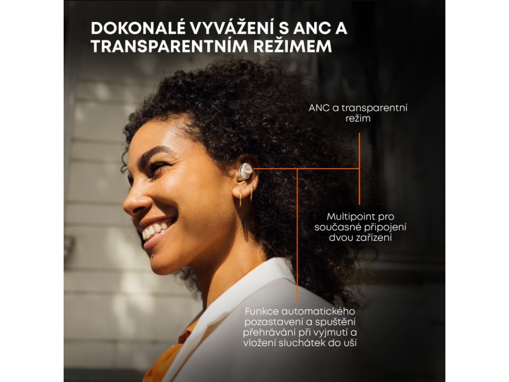Inteligencia, ktorá vám zjednoduší život: Vďaka Multipoint Bluetooth 5.3 môžete byť pripojení k notebooku aj telefónu súčasne. Prehrávanie sa automaticky pozastaví, keď slúchadlo vyberiete, a spustí, keď ho vložíte späť. Je to také jednoduché.