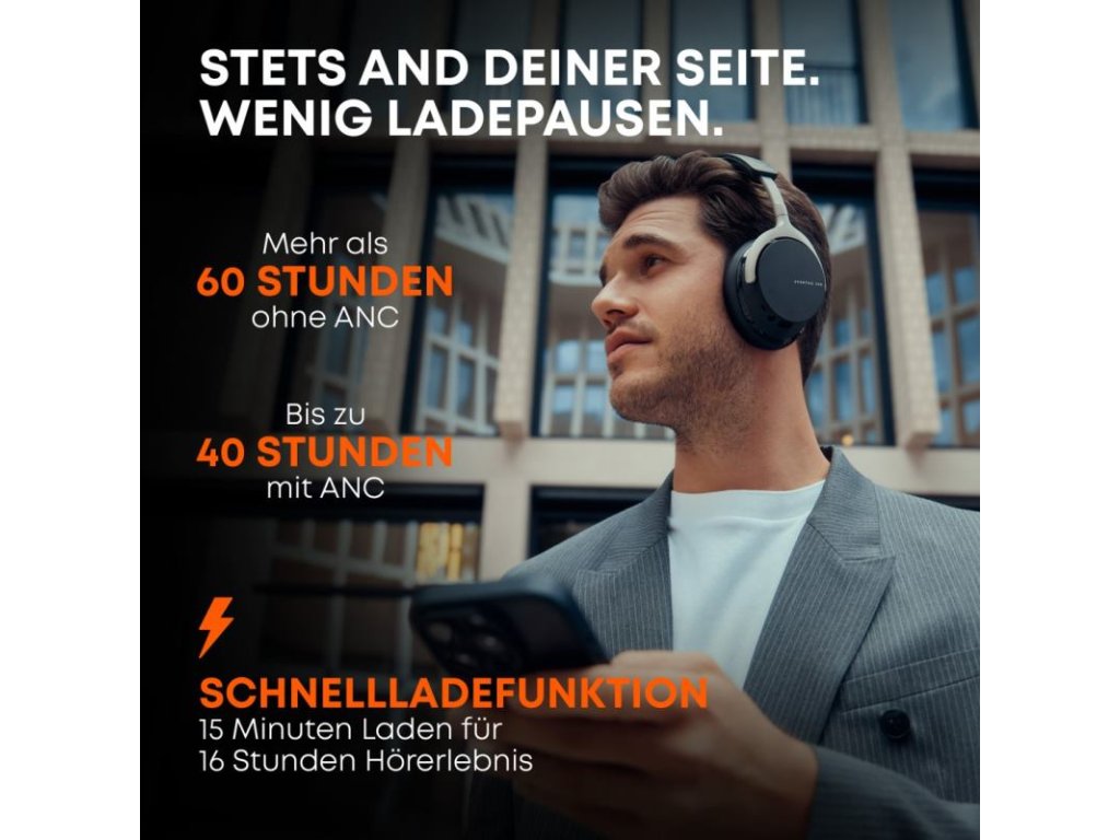 Nekonečná energia pre váš deň: Zabudnite na neustále nabíjanie! S neuveriteľnou výdržou viac ako 60 hodín (až 40 hodín so zapnutým ANC) sú AVENTHO 200 pripravené na čokoľvek. A keď sa ponáhľate? Len 15 minút na nabíjačke vám dodá energiu až na 16 hodín počúvania. Tieto slúchadlá s vami udržia krok, nech už vás život zavedie kamkoľvek.