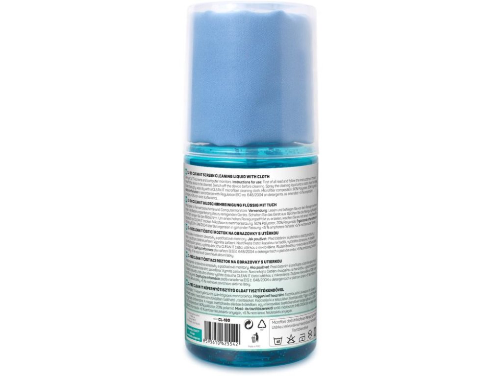 CLEAN IT čistiaci roztok je ideálnym riešením pre efektívne čistenie a starostlivosť o LCD a plasmatické obrazovky. Tento produkt obsahuje 200 ml špeciálneho čistiaceho roztoku a utierku z mikrovlákna, ktorá zabezpečuje dokonalé odstránenie prachu a škvŕn bez poškodenia povrchu obrazovky.