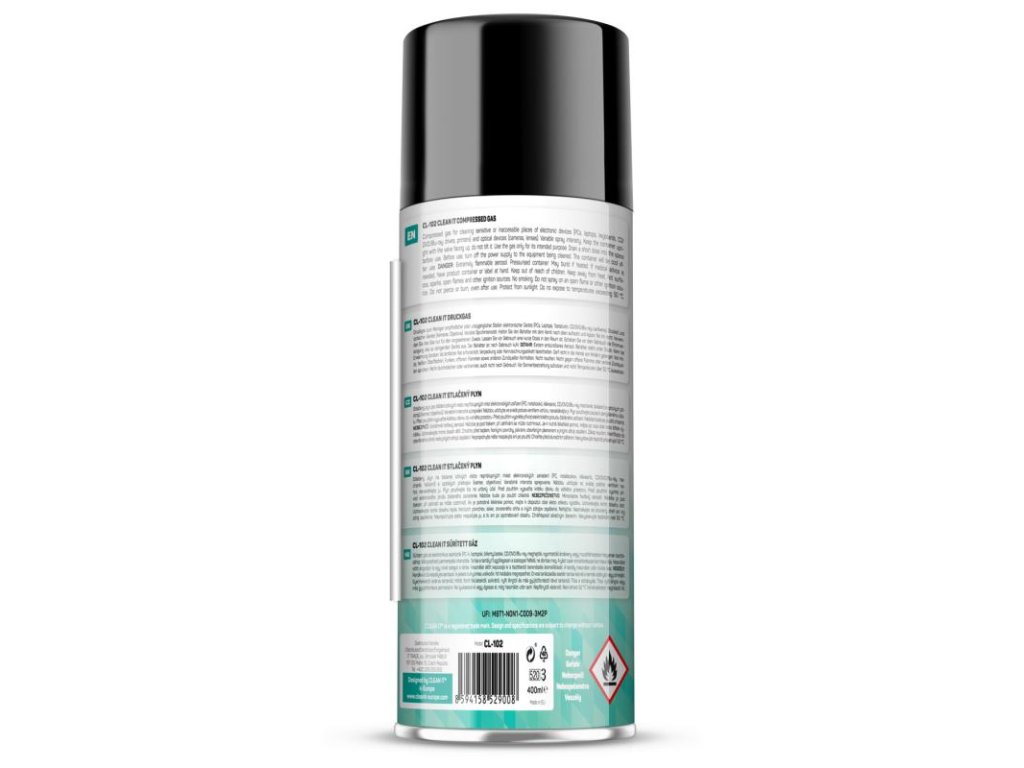 Stlačený plyn CLEAN IT v objeme 400 ml je určený na efektívne vyfukovanie prachu a nečistôt z ťažko dostupných miest. Tento produkt je hořlavý, preto je potrebné s ním zaobchádzať opatrne.