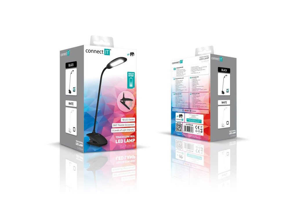 Pripevňovací klip umožňuje ľahké umiestnenie lampičky na rôzne povrchy, od pracovného stola až po rám postele či poličku. Lampička Connect IT Clip je vybavená 18 LED, ktoré poskytujú neutrálnu farebnú teplotu 4 000 K, čo je ideálne pre prácu aj čítanie. S príkonom 5 W a svetelným tokom 170 lúmenov ponúka dostatočné osvetlenie na každodenné použitie. Lítium-polymérový akumulátor s kapacitou 400 mAh zaisťuje dlhú výdrž a možnosť nabíjania pomocou priloženého USB-C kábla. Vďaka kompaktným rozmerom 55 × 415 × 115 mm a nízkej hmotnosti 125 g je lampička ľahko prenosná a vhodná na rôzne použitie doma aj v kancelárii.