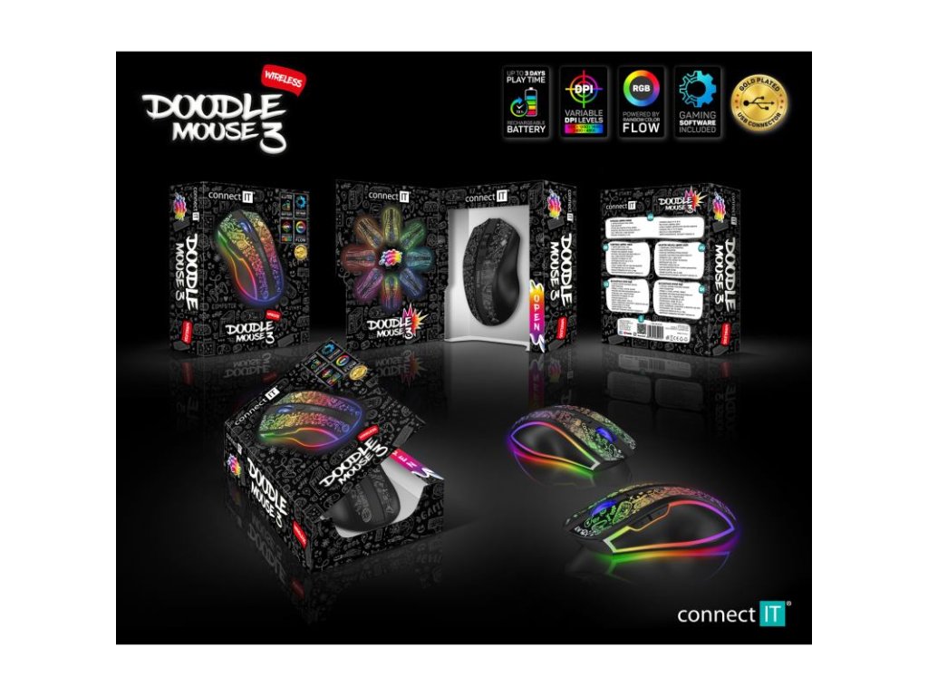 Profesionálna bezdrôtová gamingová myš DOODLE 3 je navrhnutá pre náročných hráčov počítačových hier. Vyznačuje sa spektakulárnym Rainbow LED podsvietením, vysokou presnosťou a pokročilými funkciami pre maximálny herný výkon.
