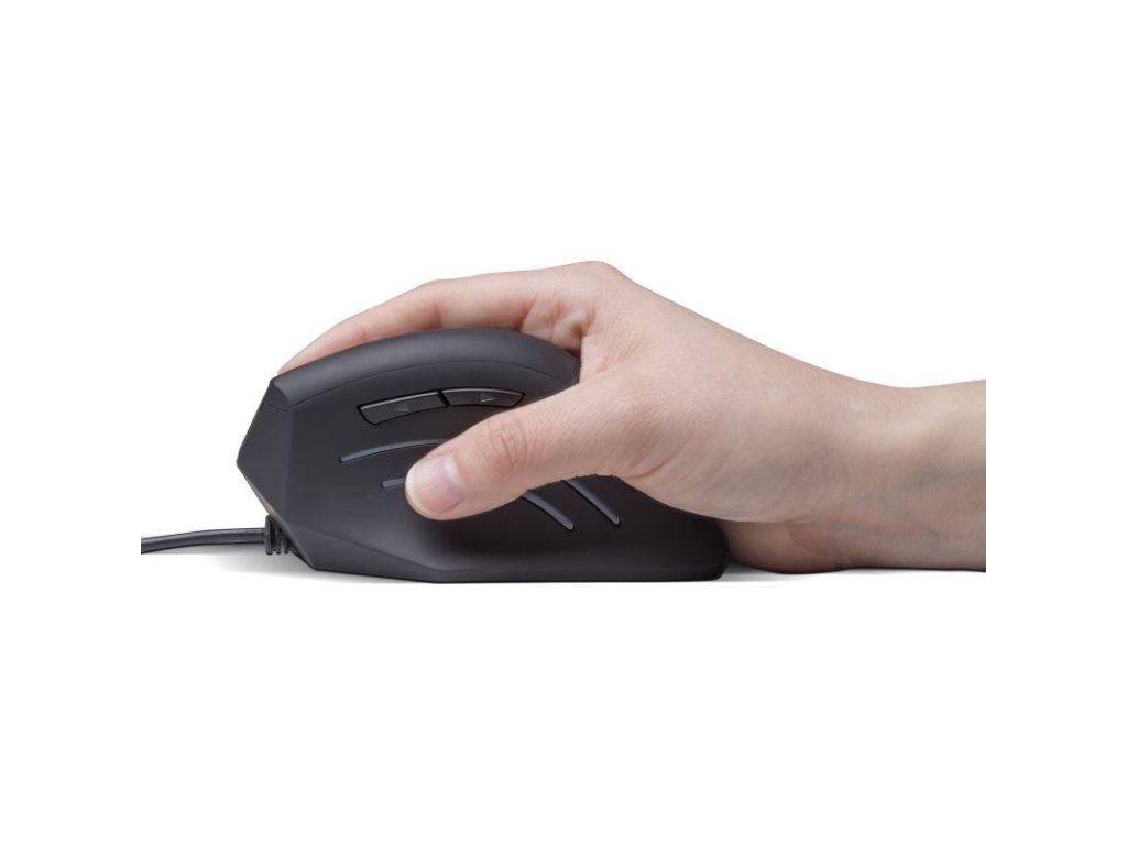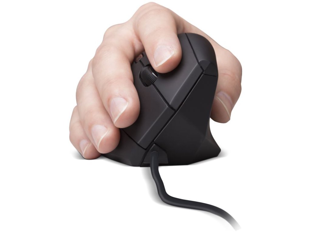 Vertikálna myš Verti Wire BLACK udržuje vašu ruku v prirodzenej polohe, eliminuje kríženie šliach a zabraňuje útlaku stredného nervu. Prevencia je vždy lepšia ako liečba!