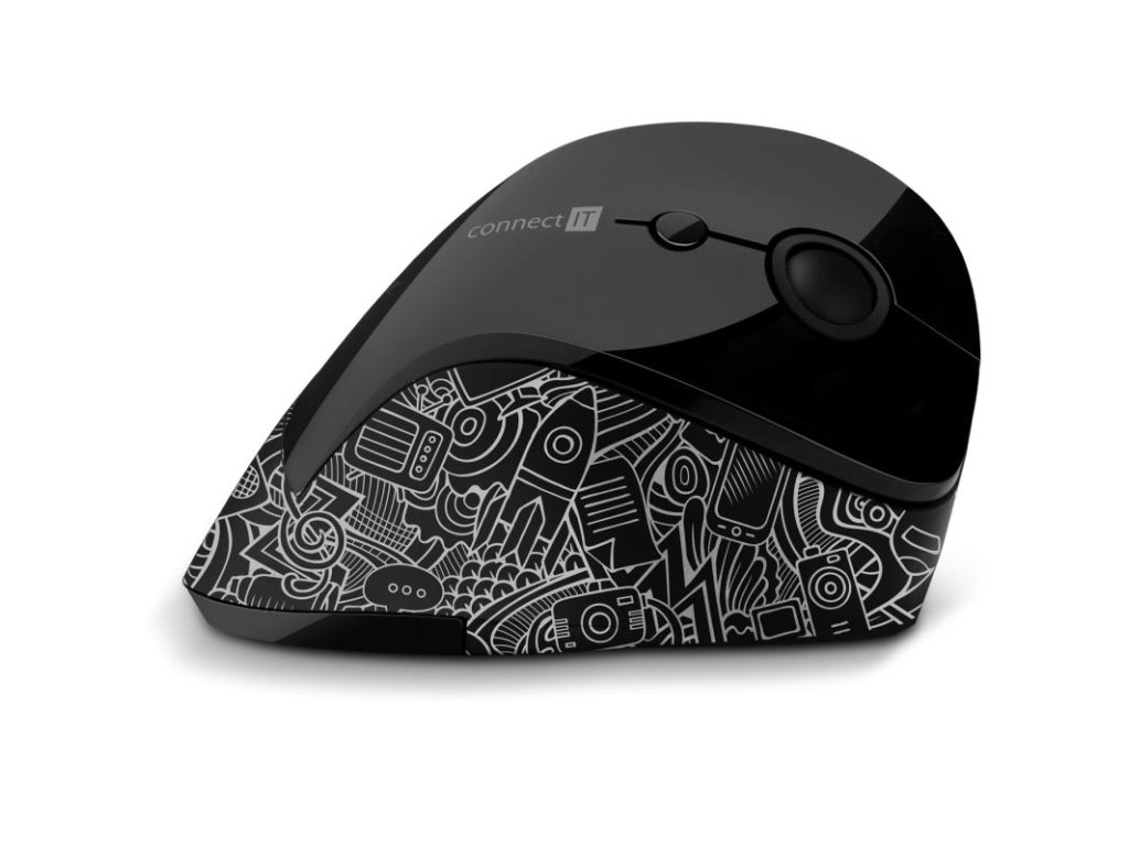 CONNECT IT Gloss BLACK DOODLE, Ergonomická myš