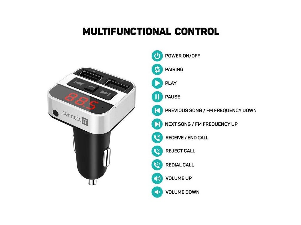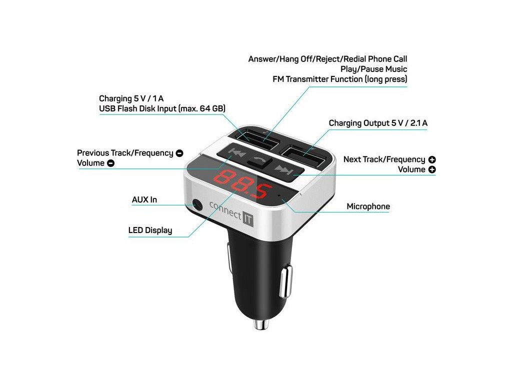 Hľadáte spôsob, ako zmodernizovať svoj automobil? InCarz Transmitter AUX SILVER je presne to, čo potrebujete! Tento revolučný Bluetooth transmitter kombinuje tri užitočné zariadenia v jednom - bezdrôtový Bluetooth handsfree, dvojportovú USB nabíjačku a hudobný prehrávač. Vďaka nemu môžete nielen dobíjať svoje mobilné zariadenia, ale aj si vychutnávať svoju obľúbenú hudbu priamo z USB flash disku alebo mobilného telefónu.
