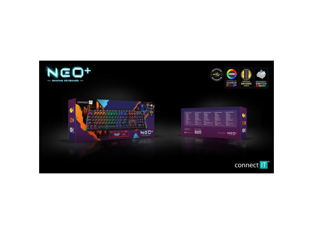 CONNECT IT NEO2+BLACK, Herná klávesnica CZ/SK