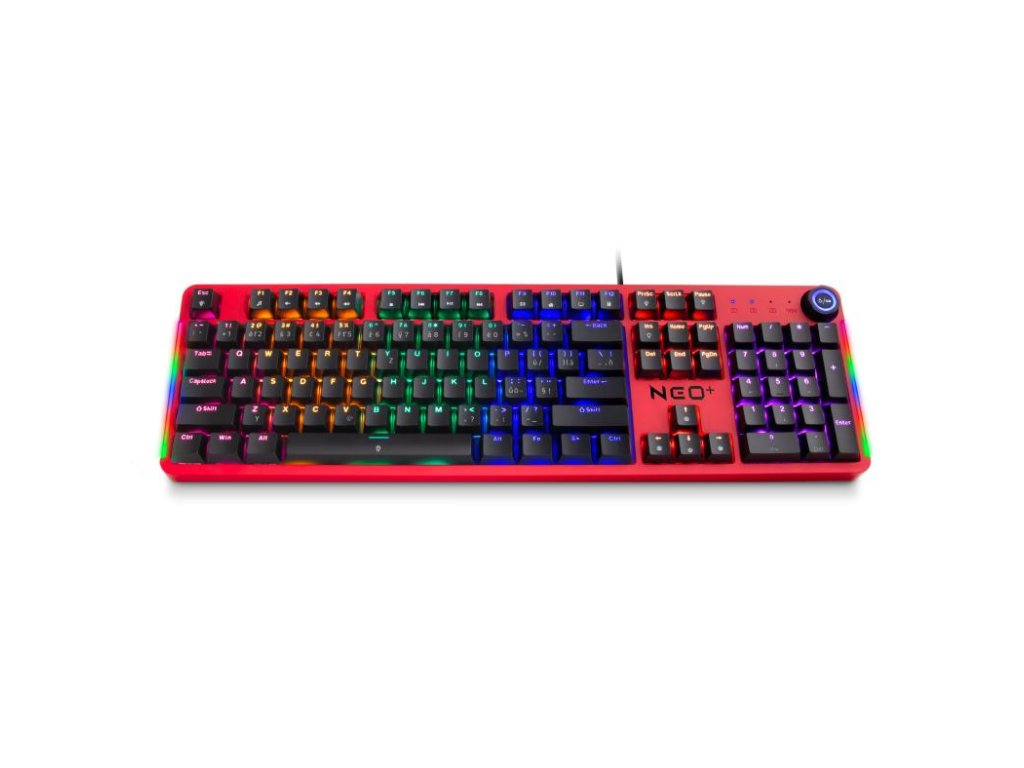 Ponorte sa do hry s profesionálnou mechanickou klávesnicou série NEO2+, navrhnutou špeciálne pre náročných hráčov počítačových hier. Klávesnica prichádza v českom a slovenskom rozložení kláves a ponúka pôsobivé farebné Rainbow podsvietenie s deviatimi dynamickými režimami. Ovládanie je intuitívne vďaka 12 multimediálnym klávesám a praktickému otočnému koliesku na rýchle nastavenie hlasitosti a jasu.