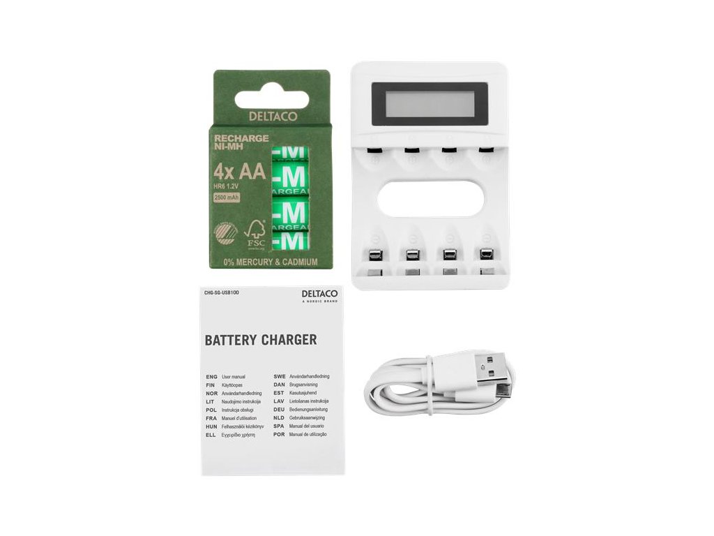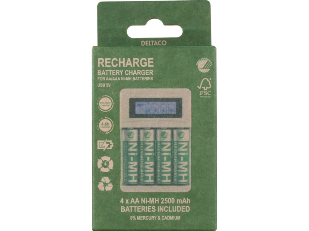 DELTACO C704A4, Nabíjačka batérií, USB + 4x AA
