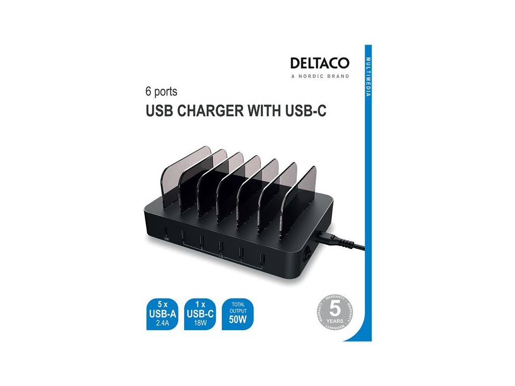 Udržujte si poriadok a majte všetky svoje zariadenia plne nabité s touto elegantnou a výkonnou USB nabíjacou stanicou. Vďaka šiestim portom a celkovému výkonu 50 W je ideálnym riešením pre domácnosti, kancelárie alebo pre každého, kto potrebuje nabíjať viacero zariadení naraz. S prémiovou 5-ročnou zárukou si môžete byť istí jej kvalitou a spoľahlivosťou.