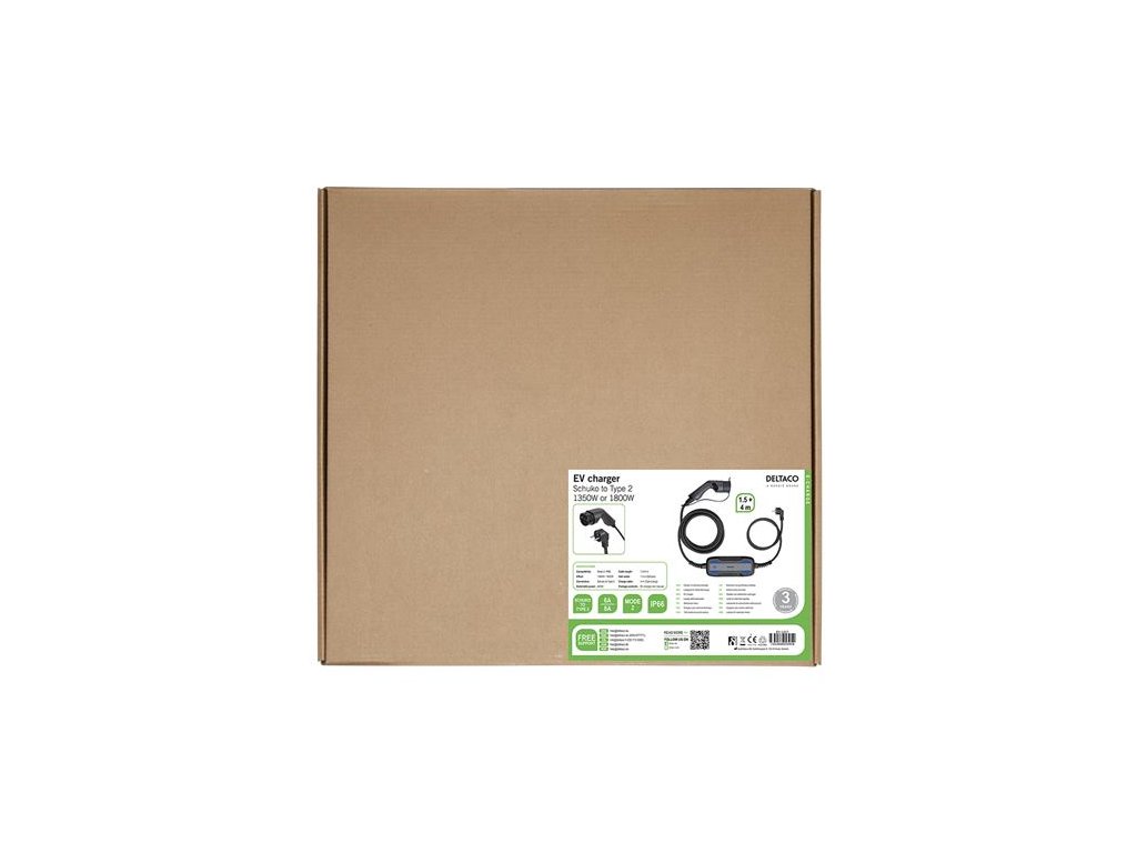 Nábíjačka s káblom DELTACO e-Charge EV-1227 je vhodná pre všetky vozidlá so zásuvkou Type2 pre tých, ktorí chcú nabíjať cez štandardnú zásuvku typu Schuko takzvané nabíjanie v režime 2. Nabíjací výkon až 1,8 kW. Nastaviteľný nabíjací prúd medzi 6A alebo 8A. Postriebrené spoje zaručujú dobrý kontakt a dlhú životnosť. Konektor Type2 je vybavený protiprachovým krytom na ochranu pred prachom, nečistotami a vlhkosťou počas skladovania. Káblový ovládací box má zabudovaný istič uzemnenia typu A.