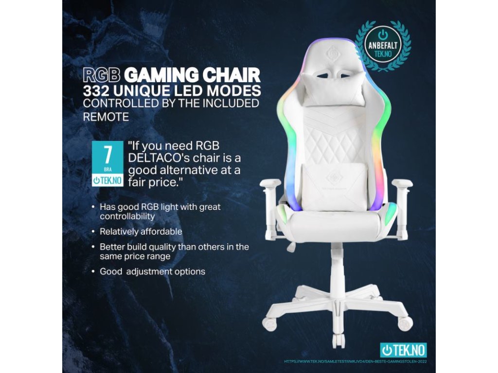 DELTACO GAM-080-W, RGB Herná stolička, biela