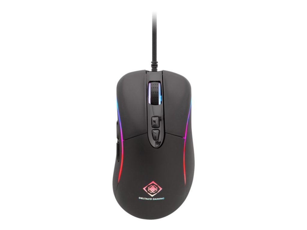 DELTACO GAMING Optická RGB myš so snímačom Avago 3050, 4000 DPI, 500 Hz a vymeniteľnými bočnými panelmi. Na každej strane myši máte LED slučky, ktoré sa môžu rozsvietiť v 8 režimoch RGB, 2 statických režimoch a "responzívnom" režime, kde sa farba rozsvieti pri každom kliknutí.