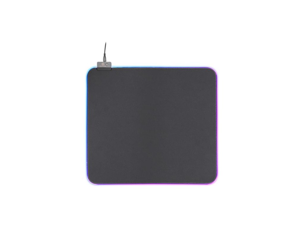 Herná podložka pod myš s RGB osvetlením po stranách. Zvršok je vyrobený z príjemnej tkaniny, ktorá zaisťuje jemný a presný pohyb s myšou. RGB osvetlenie sa ovláda jednoduchým tlačidlom v ľavom hornom rohu, ktoré prepína medzi rôznymi režimami osvetlenia.