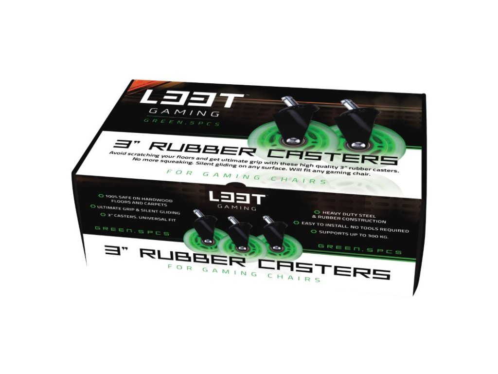DELTACO L33T 3" Kolieska pre stoličky, zelené 5ks