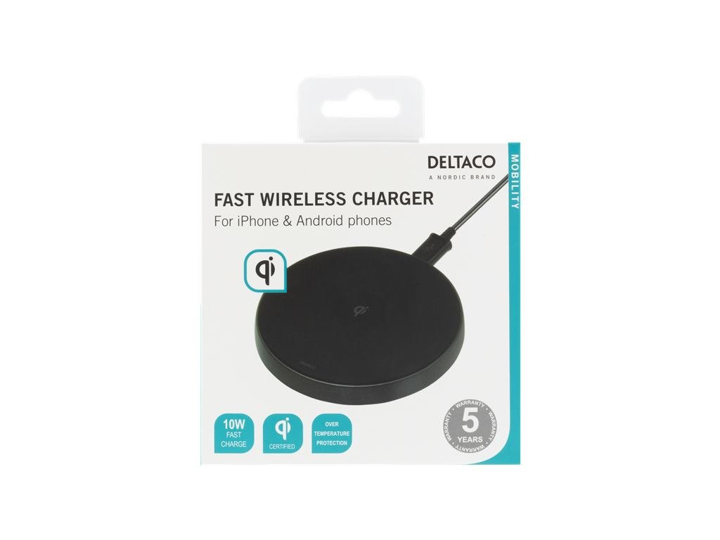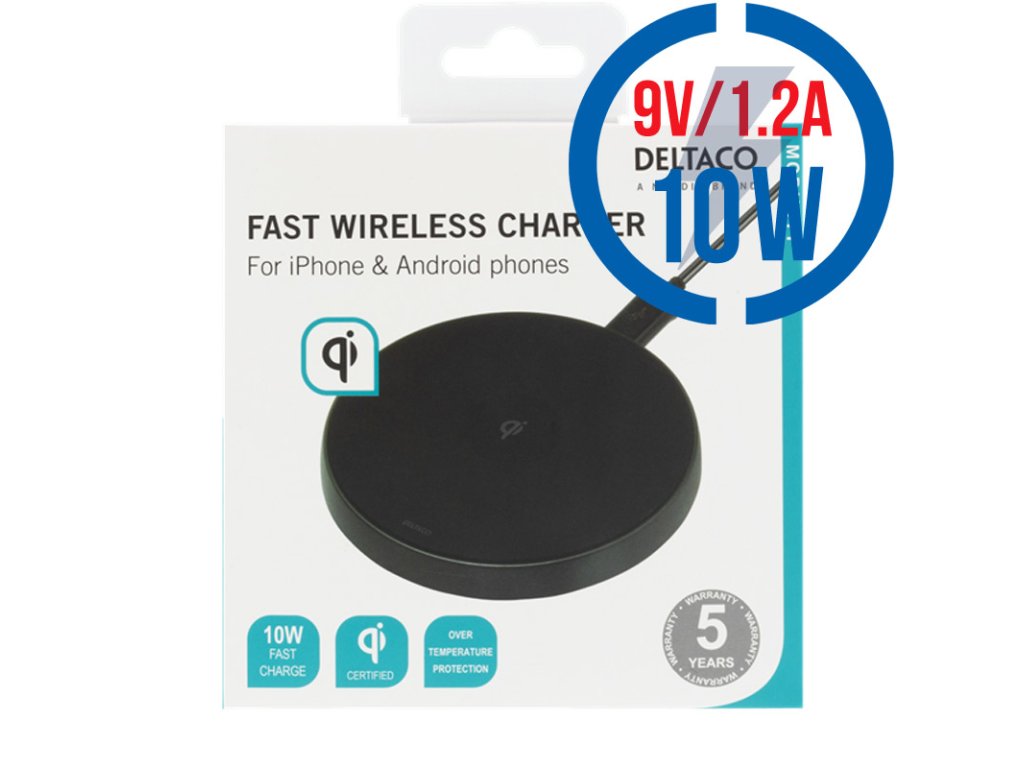 DELTACO QI-1028, Bezdrôtová QI nabíjačka, čierna