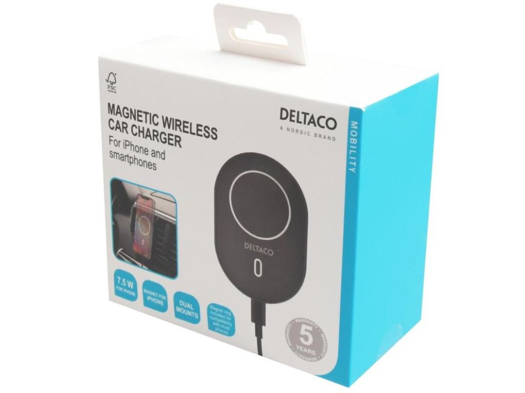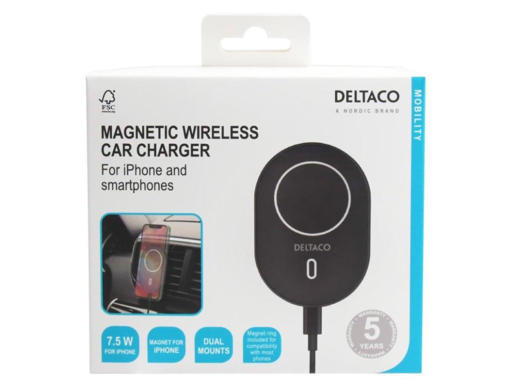 DELTACO QI-1038 Bezdrôtová QI nabíjačka do auta