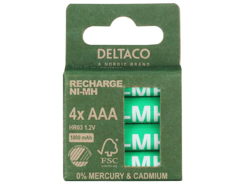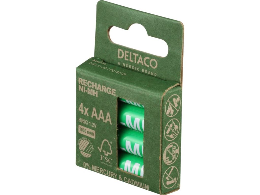DELTACO RECHARGE, Batérie NiMH AAA, HR03 4ks