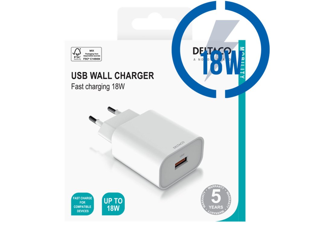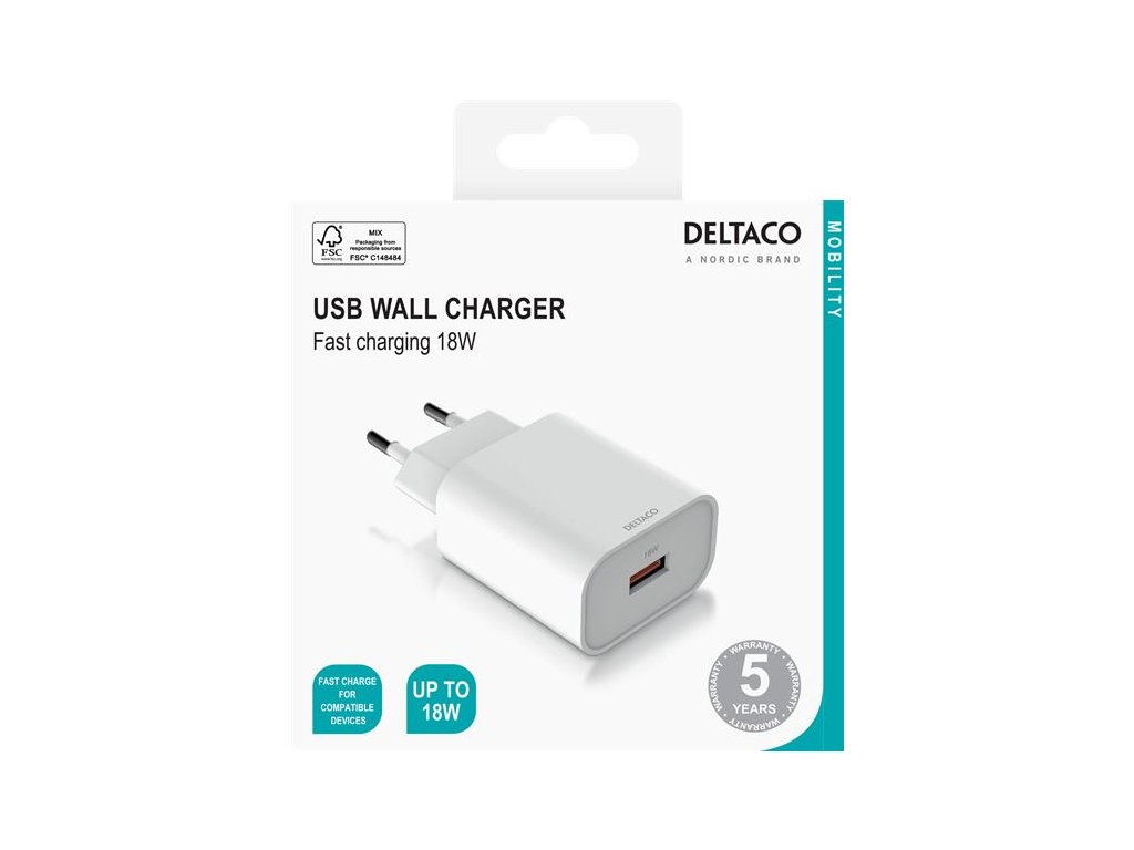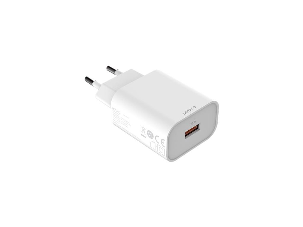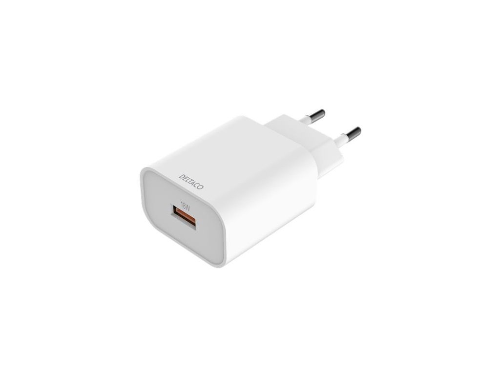 DELTACO USB-AC182, 1x USB A, Nabíjačka, biela
