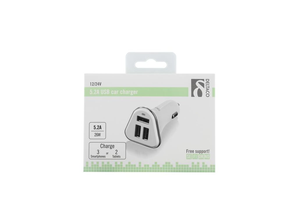 DELTACO USB-CAR102, Autonabíjačka 3x USB 2.0, bi